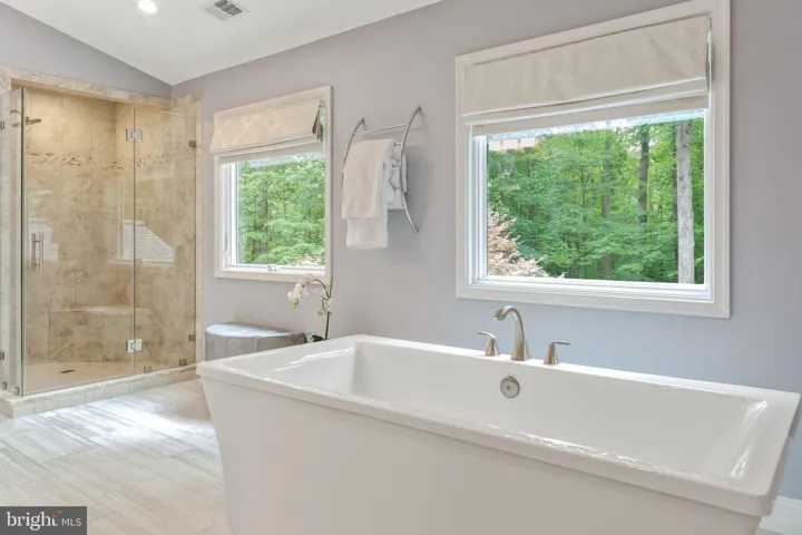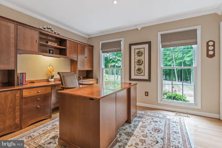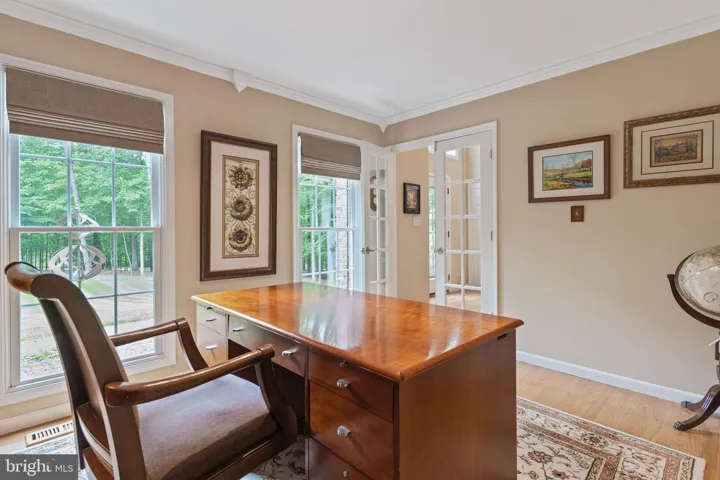 Over 4700 sqft of living space!!Exquisite Gated Estate in Fairfax Station – 5 Private Acres! A Peaceful Retreat in the Prestigious Patterns Neighborhood! Welcome to this beautifully maintained, custom-built estate located in the sought-after Patterns neighborhood of Fairfax Station. Situated on five private, wooded acres with direct access to scenic horse trails, this home offers a perfect blend of luxury, comfort, and functionality—ideal for families, entertainers, and equestrian enthusiasts alike. Key Features: 4 Bedrooms: The upper-level primary suite features vaulted ceilings, double entry doors, two walk-in closets, hardwood flooring, a linen closet, and chair rail molding. The en-suite primary bath is finished with tile, a freestanding soaking tub, a walk-in shower, granite double-sink vanity, custom cabinetry, a private toilet area, and a linen closet. Bedroom #2 has hardwood flooring and a built-in two-person granite desk. The hall bath offers a tiled tub/shower combination and a double-sink granite vanity. Bedroom #3 includes hardwood flooring, and Bedroom #4 adds crown molding and attic access. Gourmet Kitchen: The kitchen includes crown molding, granite countertops, a heated tile floor, and a center island with a cooktop. It is equipped with Jenn-Air appliances, including a microwave/convection oven on top and standard oven below, a stainless-steel farmhouse sink, pull-out drawers, a spice rack, three pantries, a lazy Susan, a breakfast area, and a butler’s pantry. A walk-out leads directly to the deck. Living Areas: The family room steps down from the kitchen and features hardwood flooring, a vaulted ceiling, large atrium windows, a ceiling fan, a walk-out to the deck, and a wood-burning fireplace with a mantle. The formal living room boasts hardwood floors and a wood-burning fireplace with a marble surround and mantle. The formal dining room includes a bay window, chair rail, hardwood flooring, and access to the sunroom. Sunroom: The sunroom features cedar framing, an open-beam ceiling, tile flooring, sliding windows, a ceiling fan, and stairs leading to the slate patio. Additional Main Level Features: The main level includes a two-story foyer with two coat closets and a curved staircase. The private study is enclosed with two sets of French doors and includes hardwood flooring and crown molding. The powder room features tile and granite finishes. The mudroom includes tile flooring, a washer and dryer, a laundry chute, hooks, a sink, cabinetry, and a side exterior entrance. Oversized 2-Car Garage: The garage includes an epoxy floor, built-in storage, shelving, cabinets, windows, garage door openers, and keypad entry. Lower Level: The basement offers a spacious recreation room with tile flooring, walk-out access, built-in bookcases, and a wood stove. A full bath includes a tub/shower combination and a marble countertop. The second kitchen is fully equipped with granite countertops, a double oven, a refrigerator, a dishwasher, and table space. A bonus room has Berber carpet and a closet that houses the radon mitigation system. Additional areas include a workshop with a workbench and tool storage, a utility closet with a water heater, humidifier, water neutralizer, and sump pump, and a storage room. Outdoor Living: The Timbertech deck features built-in lighting on the stairs and includes deck furniture that conveys with the home. The deck leads to a slate patio with a firepit and gazebo. Under the sunroom is a shed-style storage area with access to heat pump units and a garage door. Landscaping: The grounds are professionally landscaped and feature mature Japanese maple trees in the front and rear, along with Dogwoods. This timeless and elegant estate provides a rare opportunity to enjoy peaceful, luxurious living in one of Fairfax Station’s most desirable communities. Schedule your private tour today!