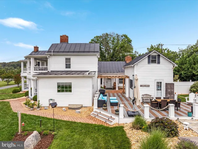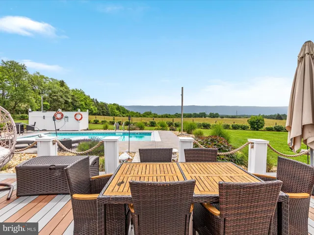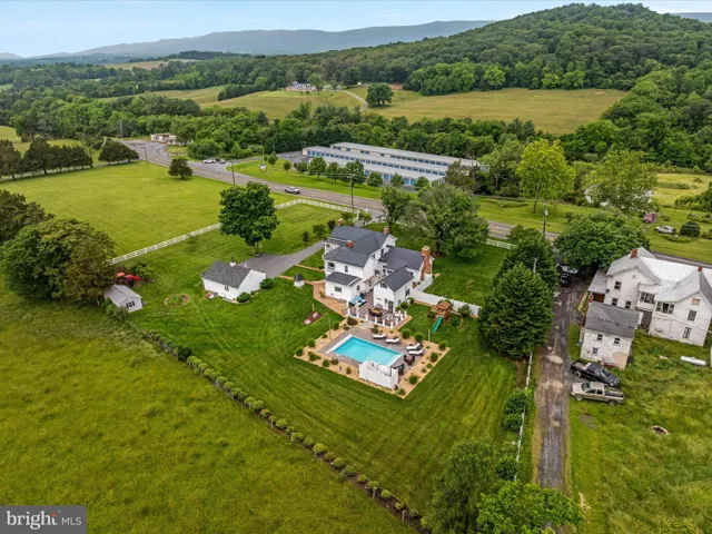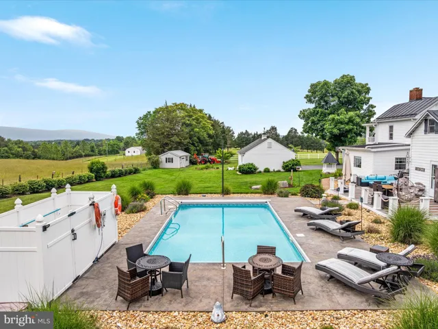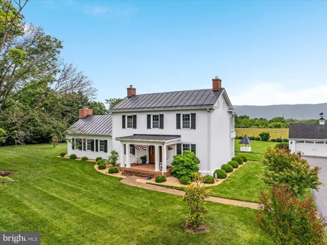 Step back in time and experience the charm of 1840 in this breathtaking Pre-Civil War estate known as PRICE REDUCED: “The 4-Mile House,” ideally located along historic U.S. Route 11. This captivating home seamlessly blends preserved 19th-century character with tasteful modern updates, creating a one-of-a-kind living experience. Perched beside a large, beautiful farm protected by a conservation easement, the home offers peace, privacy, and uninterrupted views of the majestic Massanutten Mountain range. Enjoy mornings or evenings on the expansive covered porch or unwind on the wraparound balcony overlooking the picturesque backyard—perfect for soaking in the natural beauty that surrounds you. The in-ground heated pool and beautifully landscaped patio areas invite you to relax and entertain in style. Brick and concrete patios extend around the home and pool, enhancing the outdoor living space. Inside, the main home features original hardwood floors, five cozy fireplaces, and a stunning kitchen equipped with stainless steel appliances, granite countertops, custom cabinetry, and two dishwashers. A spacious formal dining room with a stone gas fireplace connects directly to the kitchen and leads to the second staircase up to the primary suite. The primary bedroom boasts its own luxurious bathroom and private access to the upper balcony—complete with a gas fireplace and seating area, perfect for starry nights or serene mornings. An attached addition offers a grand family room with a wood-burning fireplace, custom built-ins, and abundant windows framing panoramic views of the mountains and countryside. Also included is a charming guest house featuring a rustic bar and entertainment area, one loft bedroom, and a half bath on the main level—ideal for visitors or a private retreat. A detached 2-car garage with workshop and storage space rounds out this incredible property. Some patio furniture, all pool equipment, and safety cover will convey. Yard is completely fenced with an electronic gate on driveway.