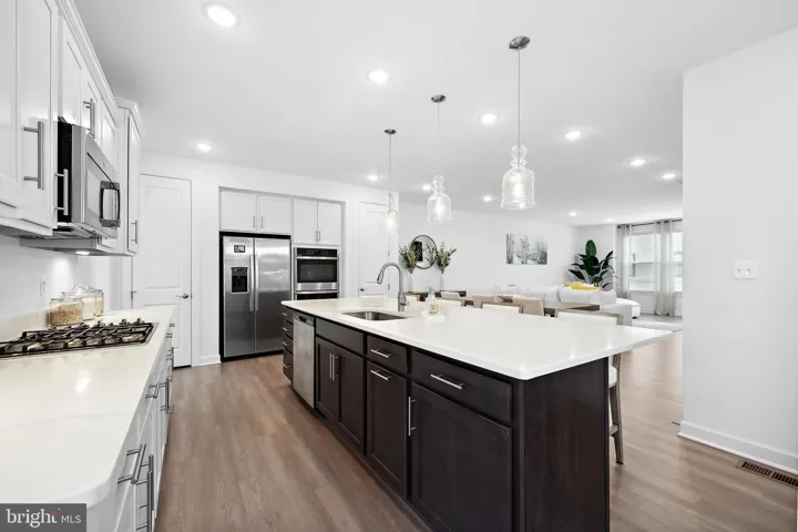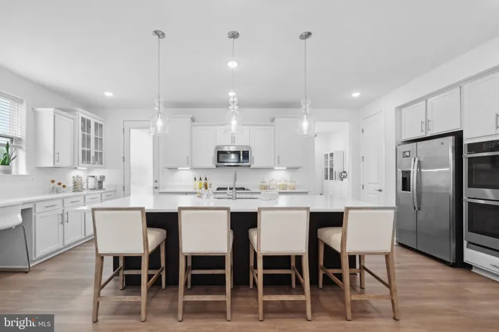 Welcome home to this modern and inviting 4-bedroom, 3.5-bath end-unit brick-front townhome in the sought-after Boulevards at Westfield community! Built in 2023, this beautifully maintained residence feels like new and offers the perfect combination of style, comfort, and convenience. The open floor plan creates a bright, airy atmosphere ideal for both everyday living and entertaining. The entry-level bedroom is perfect for guests or a private home office. At the heart of the home is a stunning gourmet kitchen featuring a large island with stylish pendant lighting, double wall ovens, abundant cabinet space, and access to a private deck—perfect for relaxing or hosting gatherings. The in-law/guest suite includes a comfortable sitting area and a walk-in closet, while the luxurious owner’s suite boasts two closets, an ensuite bath, and its own private deck. Sleek laminated flooring and recessed lighting flow throughout, and an upper-level washer and dryer add everyday convenience. A 2-car garage plus additional driveway parking provides ample space for vehicles. Just minutes from Dulles Airport and close to Sully Station Shopping Center, grocery stores, dining, and major commuter routes—this exceptional home truly has it all! Don’t miss the chance to make this home yours. Book a tour today!