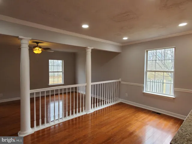 Elegant Main Level – Sunken family room, formal dining room with custom columns, crown molding, and chair rail detail