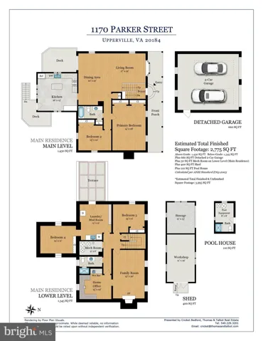 Rare village offering with acreage and views! Tucked away on a quiet dead-end street on the southern edge of historic Upperville, this beautifully updated brick home offers the best of country living—peaceful, private, and within walking distance to village favorites like Hunter’s Head Tavern and the Market at Bluewater Kitchen. Set on 1.8 acres and offered with an adjacent 2+ acre buildable parcel, this is a unique opportunity for expanded living or future investment. Thoughtfully renovated, this split-foyer home features an open main-level layout ideal for modern living. The living and dining areas flow seamlessly into a bright, eat-in kitchen with a new oversized island, quartz countertops, LVT flooring and updated lighting. Also on the main level are the primary bedroom suite, a guest bedroom, and a stylishly renovated full bath. The lower level is designed for comfort and versatility. It includes a cozy family room with a wood-burning fireplace, two additional bedrooms (one currently used as a fitness room), a second updated full bath, and a dedicated home office complete with custom built-ins and wet bar. The laundry/mudroom includes a new built-in cubby area and ample storage with direct access to the detached garage. Outdoor living is just as special: a fenced-in pool with a charming pool house (shower + half bath), two open decks, a covered front porch, and sweeping views of neighboring protected farmland and open lawn. An oversized two-car brick garage and a separate storage shed provide additional functionality. The property is fully fenced and offers ample room to relax, entertain, or explore future possibilities. Just minutes to Route 50, this home is perfectly located for commuters yet feels worlds away. Live in the heart of Upperville, but with privacy, space, and the bonus of an extra lot. A must-see!