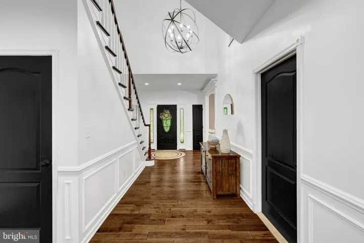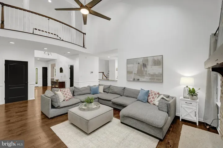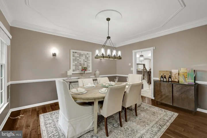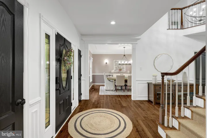 Step into the grand foyer of this Federal style home and take in exquisite light-filled living spaces. The showstopper – rich, dark hickory hardwood floors that flow throughout the main and upper levels. Off the foyer are formal living and dining rooms which offer quiet spaces for entertaining family and friends. The living room opens through french doors to a private home office with views of the yard. The heart of the home is the two-story family room with a breathtaking floor to ceiling stacked stone gas fireplace which adds charm and character. Imagine relaxing in this cozy space on crisp autumn days, or during chilly winter nights. And it adjoins the spacious culinary kitchen.