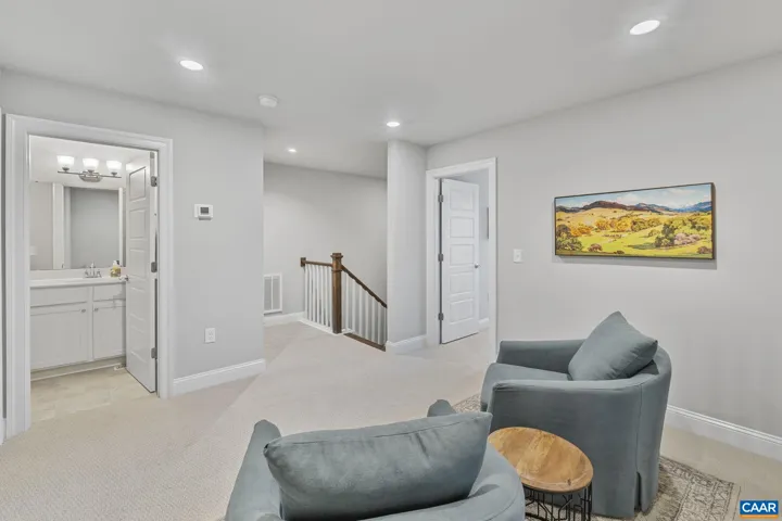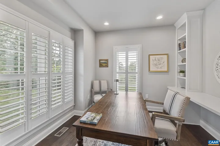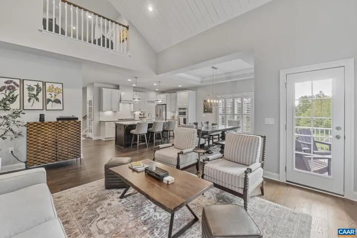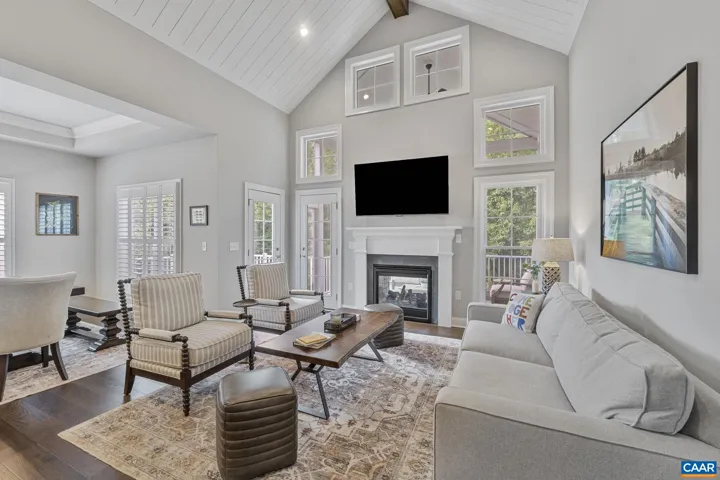 Gorgeous end-unit villa offering privacy and nature in a desirable section of Old Trail. This 5 bed 3.5 bath home with 2-car garage offers main-level living with a rare tree and stream buffer. Upon entry you will be greeted in the elegant foyer which opens to a well-appointed office with built-ins and natural light. The hallway leads to the main living area with stunning vaulted shiplap ceilings and see-through gas fireplace to the screened-in porch. Not only can you enjoy the screened-porch year round, the home features a back deck for grilling and enjoying your private nature view. The dining room flows seamlessly into the impressive chef?s kitchen that boasts a large eat-in island, stainless steel appliances, and walk-in pantry. Off of the living room is the primary bedroom with gorgeous ensuite with glass shower and walk-in closet. Upstairs you’ll find 2 additional bedrooms, full bath, loft area, and huge walk-in attic for ample storage. In addition to a wine room, the terrace level features an approved ADU with full kitchen, 2 bedrooms, full bath, and family room with its own private entrance and covered patio. Located just steps away from the shopping, dining, and golf of Old Trail! OPEN HOUSE 10/11 & 10/12 1PM-3PM!,Granite Counter,Painted Cabinets,White Cabinets,Exterior Fireplace,Fireplace in Living Room