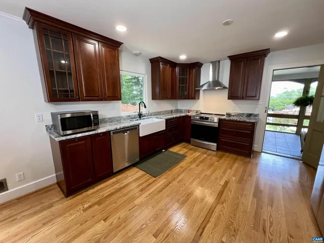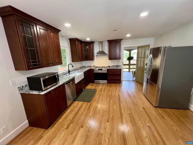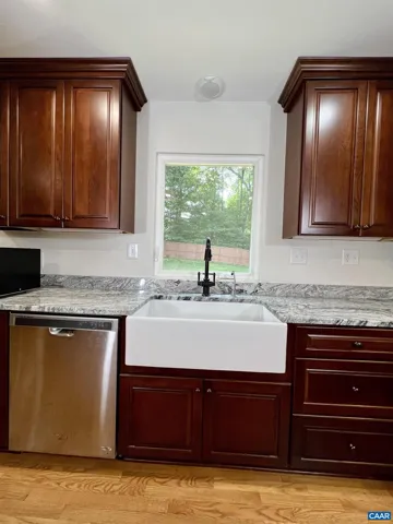 Desirable and modern Northfields property on a great private lot. Spectacular oak hardwood floors recently refinished and look stunning! Updated and modern full bathrooms on main level with first level primary/owner suite. Large open living room and dining room that open to a beautiful covered screen porch with ceiling fans. Large eat in kitchen with fireplace and private views of the back yard. Cherry cabinets, granite counter tops and stainless steel appliances with option space and connection for washer/dryer. Basement apartment features separate entry, bedroom and full kitchen. Full bathroom and large home office or recreation/flex space in basement as well. Easy access walk up attic. Over 900sf of unfinished space for storage. Oversized attached garage with workshop space. Large backyard is fenced and private. Large shed and whole house generator on the property as well.,Cherry Cabinets,Granite Counter,Fireplace in Basement,Fireplace in Kitchen