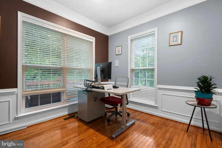 Step inside to discover beautiful solid hardwood floors throughout the main level and all of upstairs bedrooms and hallway including the stairs going up and to the basement, designer paint, and elegant crown molding and wainscoting throughout. The main level offers a dedicated office—ideal for working from home—and a sun-filled living room with large windows that bring in abundant natural light. The open-concept kitchen is outfitted with stainless steel appliances and flows effortlessly into the cozy family room, which features built-in shelving and a gas fireplace.