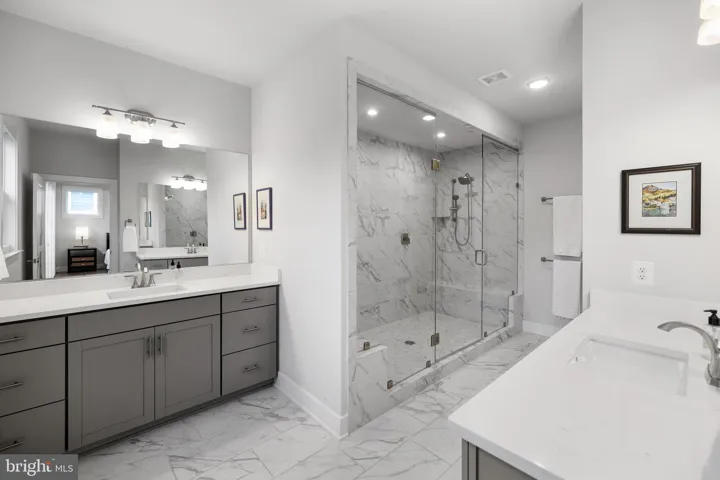 Spacious 5 bed/4.5 bath modern home with 2 car garage built late 2022 in the highly sought-after Mason Park community. Offering over 3,100 finished square feet and fenced-in backyard with gated access, this home was designed for both relaxed daily living and stylish entertaining. Step onto the covered front porch and into a bright, airy foyer and 10-foot ceilings. The open-concept main level gourmet kitchen equipped with quartz countertops, Kitchen Aid stainless steel appliances, upgraded two tone cabinetry, and a walk-in pantry. The main level also features a dedicated home office and a spacious family room with electric fireplace. The adjacent dining area leads out to a composite deck ready for summer entertaining with built-in gas grill hookup and stairs leading down to the fully fenced yard. Upstairs, the expansive primary suite offers a true retreat with two walk-in closets and a spa-style en-suite bath featuring dual vanities and a luxury walk-in shower with dual rainfall shower heads designed for ultimate relaxation. Every secondary bedroom has its own walk-in closet, and one includes an en-suite bath perfect for guests or multigenerational living. A third full bath and dedicated laundry room with a laundry sink hookup complete the upper level. The fully finished walk-up basement includes a generous recreation room, wet bar with a fifth bedroom and full bath. Designed for modern conveniences, the 2 car garage is equipped with an EV car charger and the Smart home system installed includes Google Nest camera. The neighborhood is thoughtfully designed around a community park with a large Magnolia tree offering green spaces throughout. Located just minutes from George Mason University, Old Town Fairfax, and shopping and dining options. It offers quick access to I-66, I-495, Route 123, and the Dunn Loring Metro, and is equidistant to both Reagan National and Dulles International Airports. Zoned to the highly ranked Woodson High School pyramid (Oak View ES, Frost MS, Woodson HS). This nearly new home offers timeless design, flexible space, and everyday luxury. Don’t miss your chance to own in one of Fairfax’s most connected, desirable neighborhoods. Schedule your showing today!