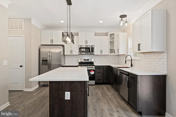 THIS INCREDIBLE GOURMET KITCHEN WITH MAGNIFICENT QUARTZ COUNTERTOPS THAT INCLUDES А CENTER ISLAND & BREAKFAST BAR, STAINLESS STEEL APPLIANCES, A STAINLESS STEEL FARMHOUSE SINK WITH A BLACK GOURMET FAUCET, LOVELY TWO-TONE CABINETS WITH MODERN PULLS, A CUSTOM TILE BACKSPLASH FOR THAT EXTRA TOUCH OF CHARACTER & A VERY SPACIOUS BREAKFAST ROOM WITH SLIDING GLASS DOORS TO THE REAR! FANTASTIC OWNER’S SUITE WITH A TRAY CEILING & A MARVELOUS ENSUITE WITH A LARGE SHOWER, DOUBLE VANITY SINKS, A PRIVATE WATER CLOSET, BEAUTIFUL CERAMIC TILING & A LARGE WALK-IN CLOSET! THE UPPER LEVEL IS COMPLETE WITH THЕ