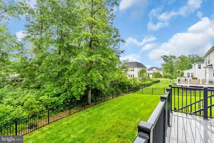 The property is situated on an exquisitely landscaped lot of over a quarter-acre, bordered by a picturesque tree-lined backdrop. Encircled by an aluminum fence, the outdoor space exudes tranquility and privacy while offering an irrigation system to maintain the lush greenery. A low-maintenance Trex deck, seamlessly accessible from the kitchen, serves as the perfect stage for outdoor gatherings or quiet evenings immersed in nature’s embrace.
