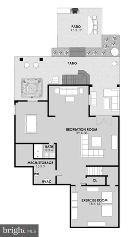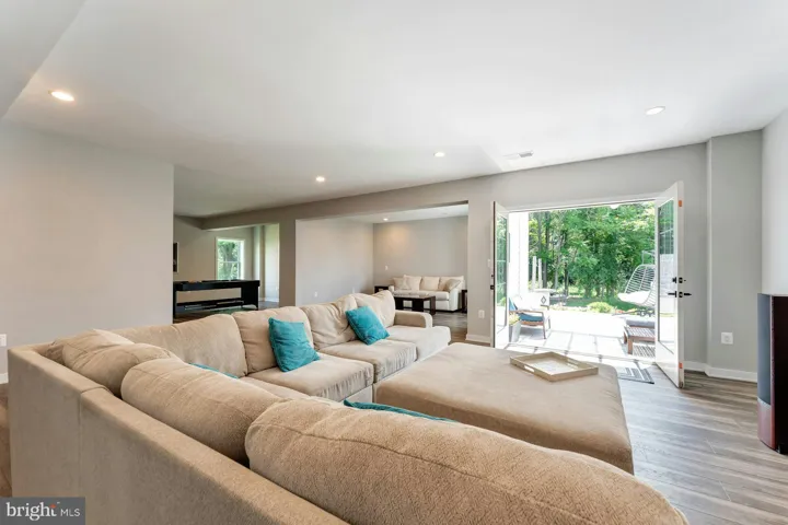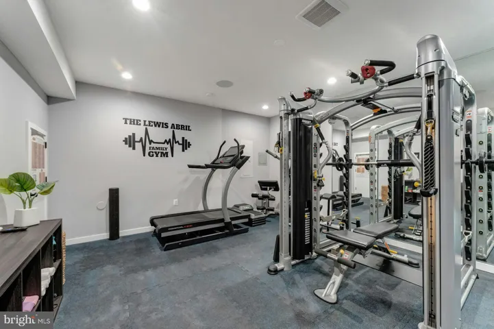 The finished lower level includes a spacious rec room, game area, a large finished area under the sunroom, full bath, and a custom gym (equipment conveys, excluding treadmill). The rec room opens directly to the expansive patio—ideal for entertaining or flexible living space.