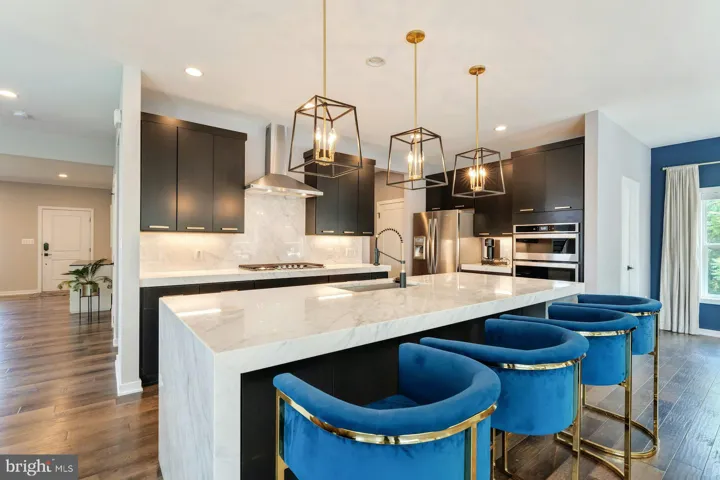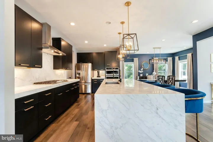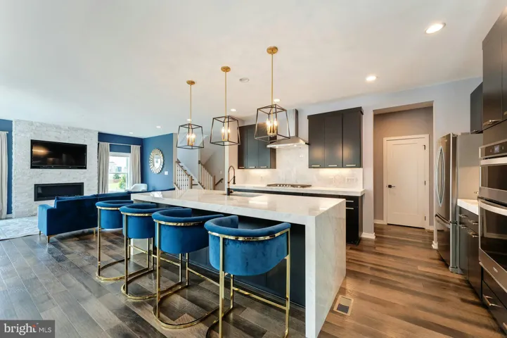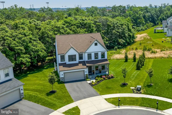 Located on a premium cul-de-sac lot backing to trees and a preserve, this exceptional home features over $250K in Toll Brothers upgrades plus $150K in custom additions. The main level showcases a gourmet kitchen with top-tier cabinetry, Italian marble waterfall counters, and wide-plank engineered wood flooring throughout. The bright sunroom addition provides incredible natural light and opens to a Trex deck. The open-concept living area is anchored by a custom stone fireplace with built-in TV—perfect for cozy evenings or entertaining guests.