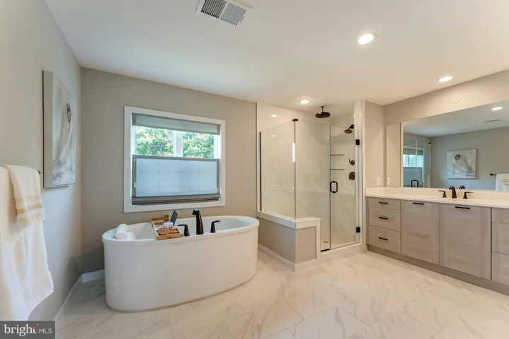 Extensive upgrades throughout the home include high-end bathroom finishes, designer lighting, custom blinds, window treatments, and enhanced electrical.