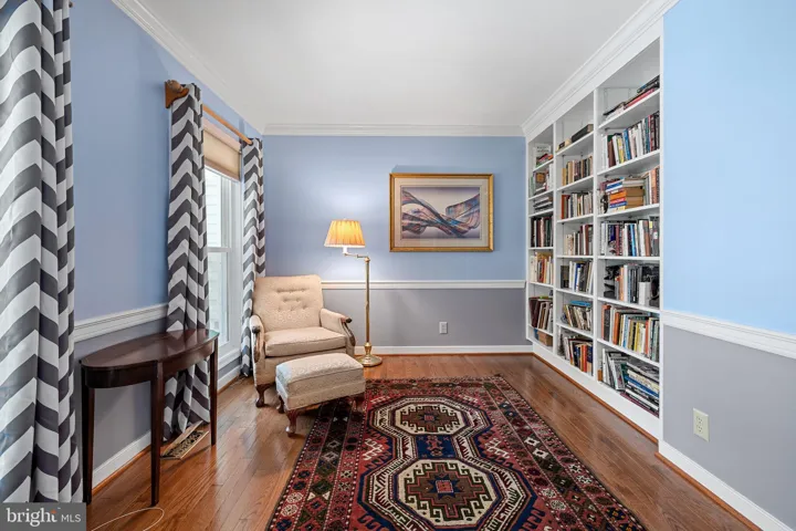 A formal living room with built-ins and a formal dining room connected to the kitchen create elegant spaces for gatherings. A dedicated office with built-in shelving, a half bathroom, and a laundry room off the garage complete this level.