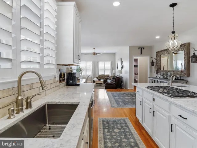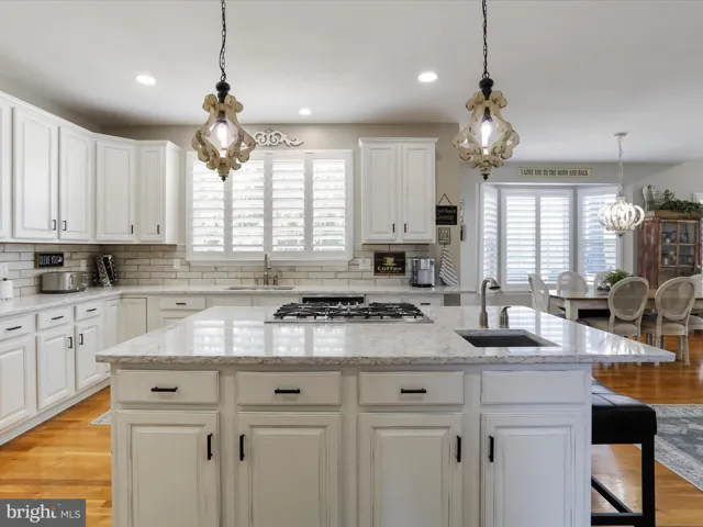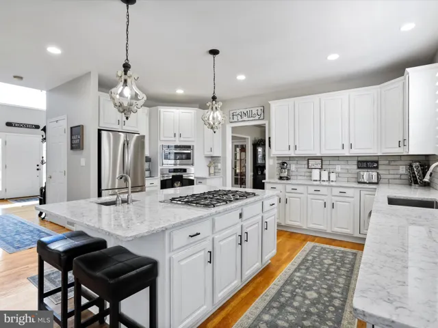 ** Gorgeous Open Concept Kitchen** The kitchen seamlessly flows into the family room and leads to a large composite deck for outdoor gatherings. It also boasts a sprawling island with a 5-burner gas stove, prep sink, large pantry, and upgraded appliances.