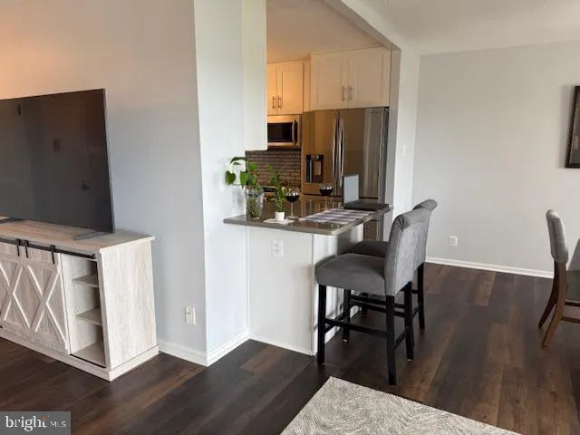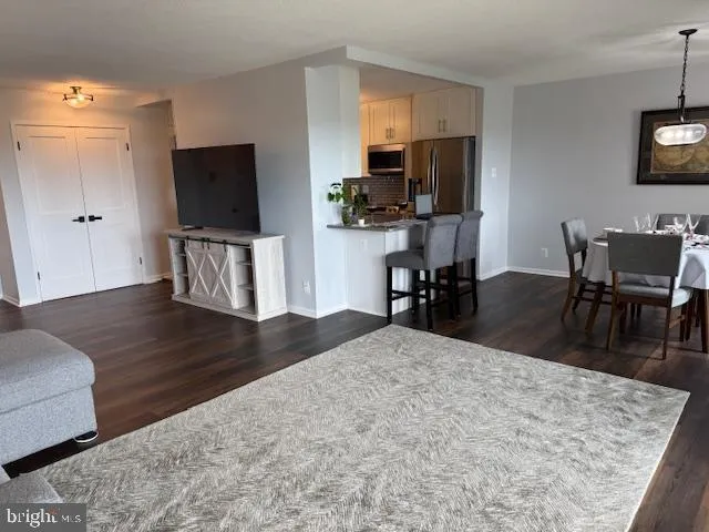 PENTHOUSE UNIT AND WHAT A VIEW! This G Model unit has 1309 square feet and is composed of two bedrooms and two baths. Location is top floor of Building 4 looking towards the Springfield area with the tops of trees on the horizon. Magnificent lush green scape showcases the Northern Virginia location. Unit includes one assigned Parking Space #766. Overized balcony and picturesque scenery of the 37 acres community. The tastefully re-designed Kitchen has White Shaker Style Maple Cabinetry on both sides of galley kitchen with high end appliances to include multiple drawer Refrigerator and freezer, Over-the-Range Microwave , Electric Range and Dishwasher. Cabinets have roll out shelving and lazy-Susan corner cabinetry. Laundry Center conveniently located in tucked away area of Kitchen. Expanse of Quartz countertop for food preparation and meal service makes this Kitchen functional for laptop work station or eat-in bar area. Additional Pantry and/or Closet area conveniently located between Kitchen and Dining Room for storage. Durable Luxury Vinyl Plank flooring throughout living areas with no transition strips for unobstructed walking; durable comfortable padded carpet in bedroom areas. Primary Bath is beautifully upgraded with walk in ceramic tile stall shower having glass doors and furniture style vanity with quartz countertop. Second Bath also equally as exquisite as the Primary Bath with tub/shower combination with glass shower doors and oversized vanity having Quartz countertop. Primary Bedroom includes two Closets for organizing personal clothing, shoes and accessories. Each home at Watergate at Landmark has its own HVAC unit for consistent temperature control and the Seller is providing a Krafft HVAC Service Warranty which will transfer to Buyer upon settlement and includes two servicings per year. Utilities included in monthly assessment are electricity, gas, water, sewer, garbage, building antenna, Master Insurance Policy and parking fee, along with access to amenities to include the Indoor and Outdoor Pools, Racquet Sports of Tennis and Pickle Ball, Fitness Center, Library, Nail/Hair Salon, Convenience Store and Restaurant plus much, much more. Occupant pays phone, internet and Cable TV (or Dish network). Underground tunnel system allows access to the Fitness Center and Indoor Pool without traveling outside regardless of weather conditions. This home includes one assigned parking space and two addtional parking passes for vehicles assigned to this unit, Guests and frequent visitors obtain additional parking passes as needed. Resort style living in a gated community just minutes away from DC, Alexandria, the Pentagon and National Airport. Pet friendly community with 24 hour Patrol Services, situated on 37 acres of exclusively landscaped surroundings of mature greenscape. WAL has a prime location in Alexandria, Virginia with amenities unmatched by other condominium complexes while living in a serene cohesive residential community.