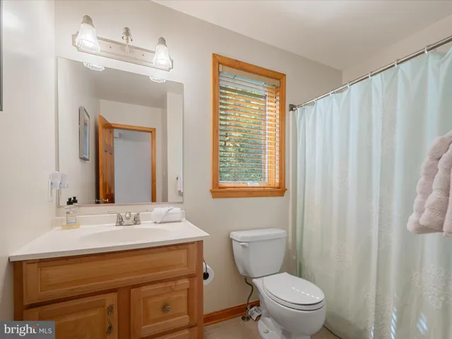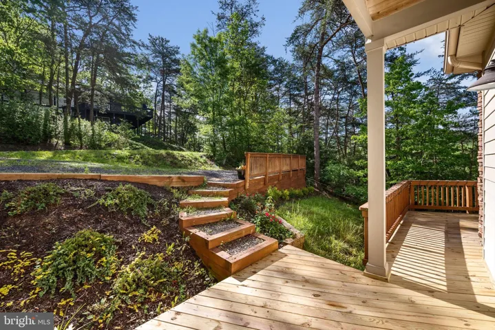 The fully finished basement provides a flexible living space with exterior access, perfect for guests or extended family or a rec room. It includes an additional bedroom, a third full bathroom, and a laundry room with built-in storage solutions. A covered sitting area beneath the upper deck offers a peaceful spot to unwind amidst nature.