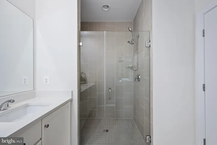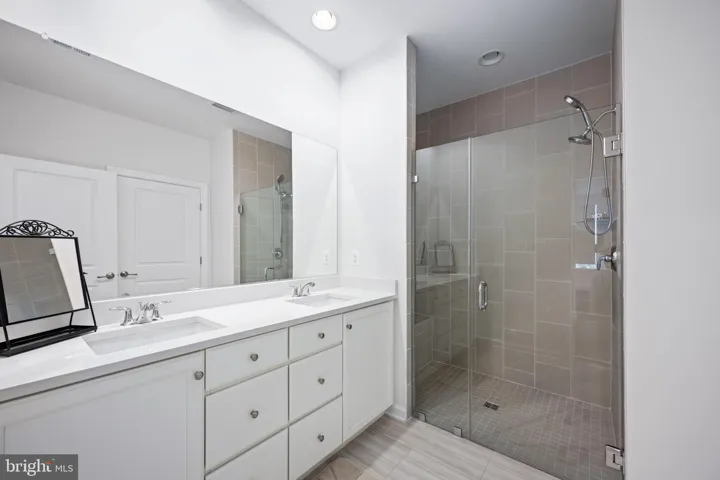 The spacious main-level primary suite features two walk-in closets and a spa-like bath with a glass-enclosed walk-in shower and double sinks. A drop zone and laundry room on the main level add everyday convenience.