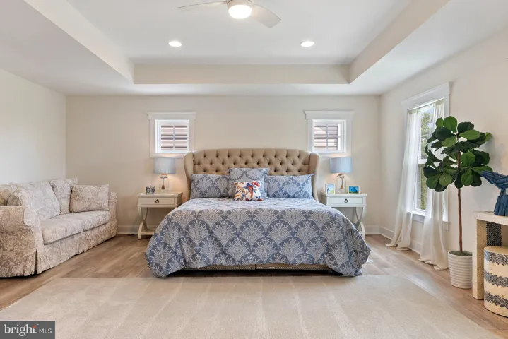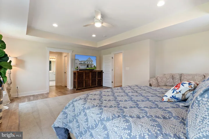 An 8 zone Rain Bird Irrigation System has been installed in front, side and rear lawn areas. This lot is large enough for your future in ground pool and/or patio/deck. The Interior is approx 3969 Sq Ft of pure showcase delight. Open Floor Concept moves one gracefully from room to room. Luxury wide plank hardwood laminate flooring covers entire main for an impressive first glance. Note the upgraded Trim and 5 panel Door package, recessed lighting and 9′ Ceilings throughout! Formal Living and Dining spaces create that designer touch interest. The Gourmet Kitchen hosts matching high end KitchenAid Stainless Steel Appliances, unique pendant lights that hang over the Carrara Marmi Quartz Center Island, a deep Stainless Steel sink & Creamy White Cabinetry. Convenient half bath nearby. The inviting Family Room just off the kitchen offers a cozy gas fireplace, remote controlled Hunter Douglas Blinds and upgraded ebony stained oak curved staircase to upper level. The cheerful Breakfast Room bump out is perfect for morning coffee, light family meals, game playing, reading or doing just necessary paperwork. On the upper level…the Primary Suite features a tray ceiling, same wide plank flooring, 2 his and her walk-in closets and an en-suite deluxe primary bath complete with large walk-in shower and soaking tub, separate water closet and dual vanities. 3 more Private Guest Bedrooms each with own walk-in closet; a full guest bath and laundry room and linen closet are offered just down the hall. The lower walk out level is carpeted and mostly finished with another decorative full bath and added game room bump out. There is additional space for a future 5th bedroom/den or office if needed otherwise what a great massive storage area.