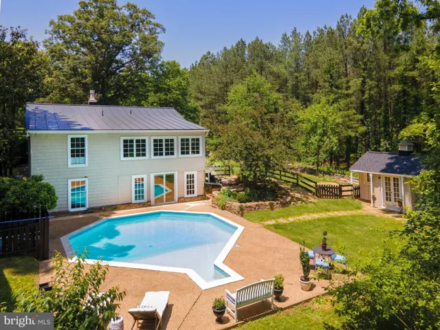 Tucked away on a quiet side street in the heart of historic Upperville is the delightful “Hatcher’s Cottage.” It has been thoughtfully and thoroughly renovated offering the rustic charm of hunt country with the comfort and style of today. Set on nearly half an acre, this picture-perfect property welcomes you with stepping-stones that lead to a handsome antique door adorned with a brass fox knocker. Inside, refined yet inviting spaces unfold which are ideal for quiet moments or lively gatherings. The formal living room features gleaming hardwood floors, while the open gourmet kitchen impresses with top-of-the-line appliances, new cabinets and countertops, and views into the sun-drenched dining room. A wall of windows here frames a beautiful view of the gardens and sparkling pool below. Two bedrooms and two all-new full baths complete the main level. From the sunroom/dining room, step outside to the pool or take the interior staircase to a bright and spacious lower level. Downstairs you’ll find a cozy family room with a fireplace, a private home office, large laundry/mudroom, a third guest bedroom and an additional full bath. A charming garden room complete with exposed stone walls, two greenhouse-style windows and French doors allow easy access to the pool area. The distinctive octagon-shaped pool features slender entry steps and an underwater bench all surrounded by an expansive pool deck perfect for lounging and entertaining. The fenced garden area includes a stylish new pool house with a full bath, sitting room and a private deck on one side. On the other side is the detached two-car garage with extra storage both above and behind. Improvements include new metal roof, new HVAC, updated septic and well, upgraded electric, updated plumbing, new privacy fencing and High Mountain buried fiber internet. A rare turnkey offering in one of Virginia’s most picturesque villages—don’t miss it! (More interior photos to come!)