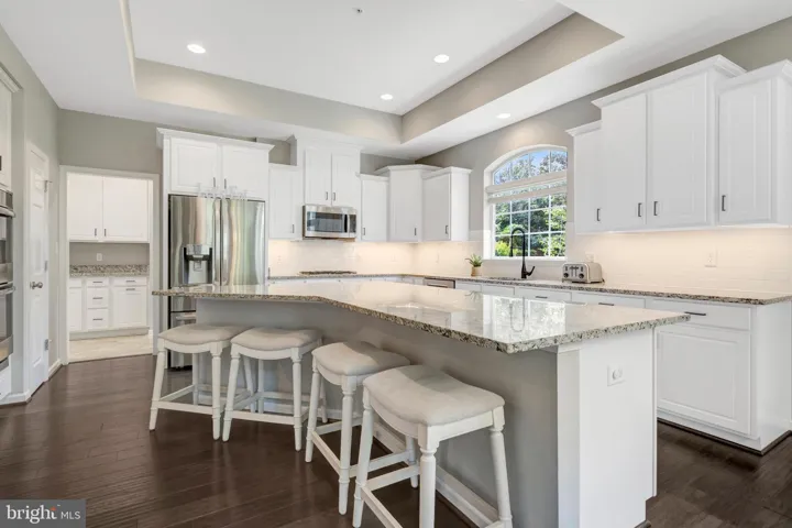 Enter inside to a pristine interior showcasing a sprawling white kitchen with classic white cabinetry, abundant counter space, and an open layout—perfect for both everyday living and entertaining. The gorgeous screened-in porch invites you to relax while taking in peaceful wooded views.