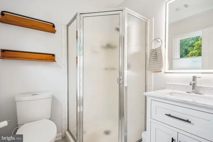 Step from the charming front porch and into the sun-filled main level featuring hardwood floors, recessed lighting, and the many windows that flood the space with natural light. The Open Living Room Dining Room with wood burning fireplace plus doors to the wonderful deck are a delight! The modern kitchen is outfitted with granite countertops, new stainless steel appliances, and a breakfast bay window. This level also includes a beautiful powder room and entry closet. The window lit stairs lead the way to the upper level with the beautifully finished Primary Suite, a serene retreat, featuring a ceiling fan, closet, and the ensuite bath with vanity, wonderful frameless mirror with LED lighting and anti-fog setting and a step-in tiled shower. Two more well sized bedrooms and a beautiful hall bath complete the upper level.