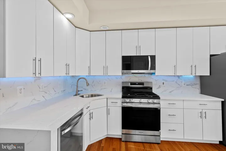 a stunning, fully remodeled townhome in the heart of the sought-after Cascades community. This home feels like new construction, with updates that include all bathrooms, LED lighting, fresh neutral carpet and paint, and a designer-inspired kitchen. The main level greets you with gleaming hardwood floors and an open layout featuring a spacious family and dining room, a convenient powder room, and a brand-new gourmet kitchen boasting 42″ flat-panel cabinets, stainless steel appliances, a custom butler’s pantry, and pantry storage. Step through the sliding door to an oversized deck—perfect for entertaining or relaxing outdoors. Upstairs, the private owner’s suite offers cathedral ceilings, skylights, a ceiling fan, a walk-in closet, and a spa-like bath. A generously sized secondary bedroom features its own ceiling fan, LED lights, and access to a beautifully renovated hall bath. The lower level provides flexible space with a large recreation room or fourth bedroom, full bath, a den, and ample storage. The fully fenced backyard offers a serene patio retreat, while abundant parking adds daily convenience.