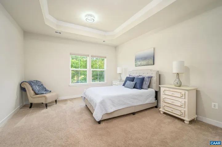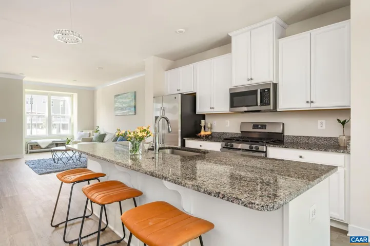Motivated seller invites you to bring all offers. This almost-new, immaculate townhome offers the NEWEST CONSTRUCTION and BEST PRICE in FOREST LAKES. Almost 2,300 sq ft. home w/ large yard is comfortable and well-designed. Dazzling kitchen at the heart of main level offers an oversized island, granite counters, upgraded appliances and crystal pendant lights. Spacious great room, open dining area and private rear deck make entertaining a joy! Extras include 9 ft ceilings on 1st & 2nd floors, large windows and custom blinds. Primary suite is a luxury retreat w/ walk-in closet and spa-inspired bath w/ dual vanities, garden tub and separate shower. Large rec room in the walkout lower level is perfect for movie nights, gaming and relaxing. You?ll find a half bath and abundant storage on this level too, along with access to the patio and a level lawn. No shoveling, mowing, leaf blowing or mulching. That’s all taken care of by the HOA! Maintenance-free living lets you spend more free time on the trails, at community pools, at the fitness center, and at pickleball courts. Coveted school district. Minutes to shopping, restaurants, highways and the Charlottesville airport. 15 minutes to UVA. Closing Cost incentive with acceptable offer!,Granite Counter,Maple Cabinets