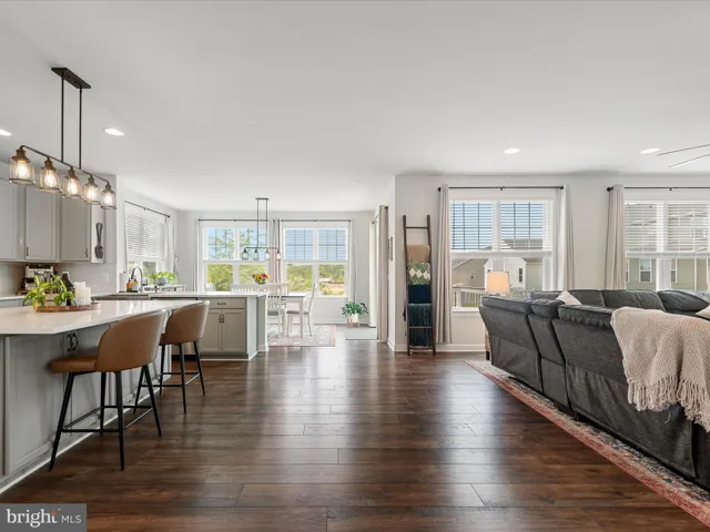Stunning turnkey home built by Brookfield Residential in 2023 with approximately 3,957 finished sq ft | 4 BR/3.5 BA | 0.19 acres located in the sought-after Snowden Bridge, with community pool, play pirate ship and numerous amenities. Engineered wood floors flow throughout the main level, which features a lovely foyer, living room, dining room, pantry area, family room, sunroom, & gourmet kitchen with quartz countertops, 5-burner gas cooktop, tile backsplash, and island with storage on both sides. Enjoy the reverse osmosis water system with sink tap, which is also set up to feed water to the refrigerator. The sunroom off the kitchen extends your living area and leads to a gorgeous composite deck with black balusters and steps down to a paver patio with pergola with adjustable louvres. The nicely-sized yard rolls gently toward the back with plenty of privacy and green space. Don’t miss the newly updated main level half-bath with board and batten wall finish.