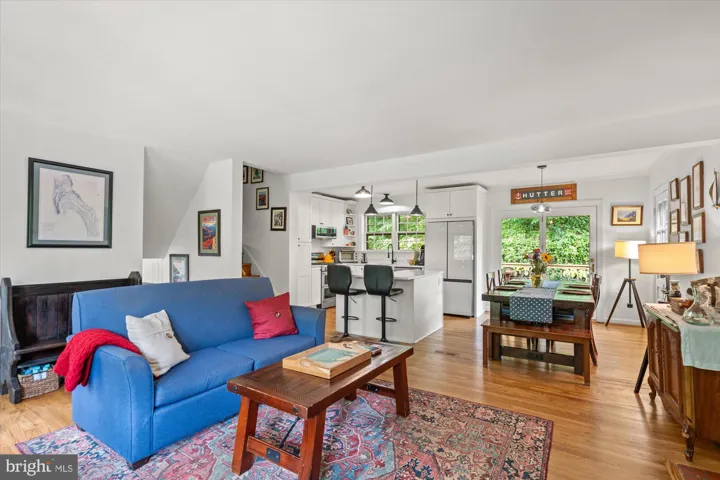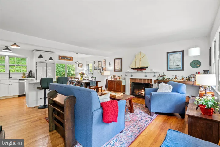 Step inside to find gleaming hardwood floors that lead you through a light-filled living room with a cozy wood-burning fireplace. The updated kitchen, the heart of the home, features an inviting island, perfect for your morning coffee or evening cocktails. Walk up to 3 bedrooms and two beautifully renovated bathrooms.