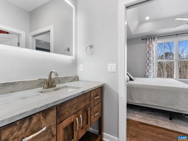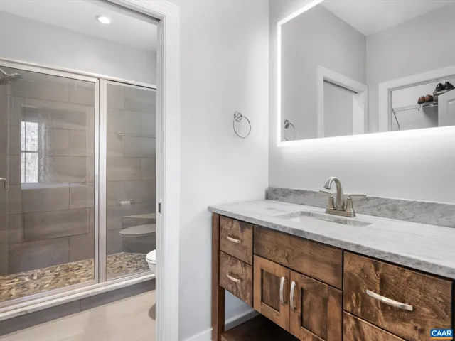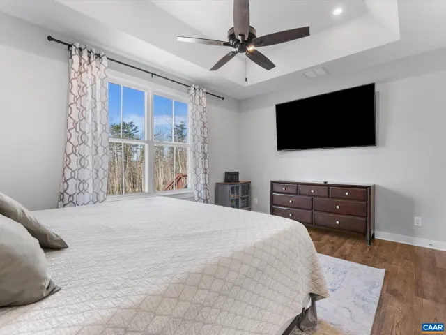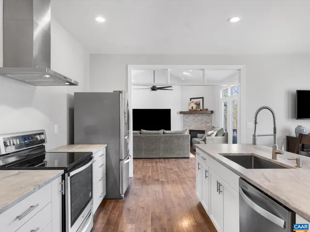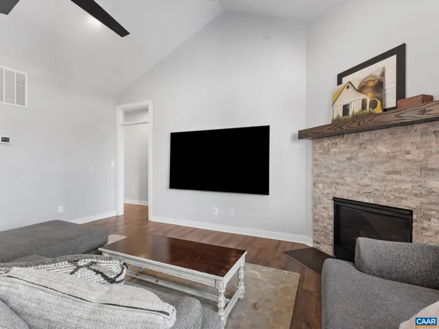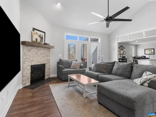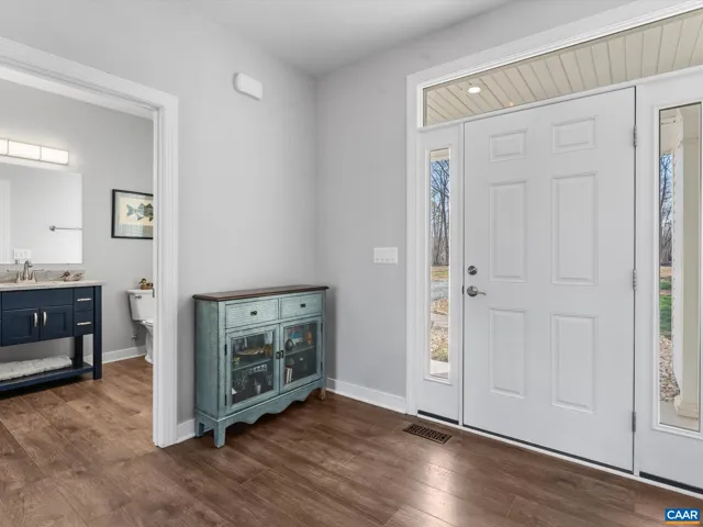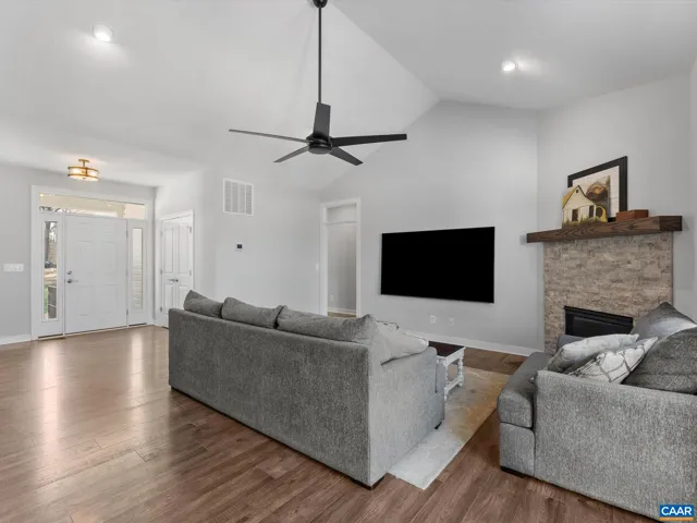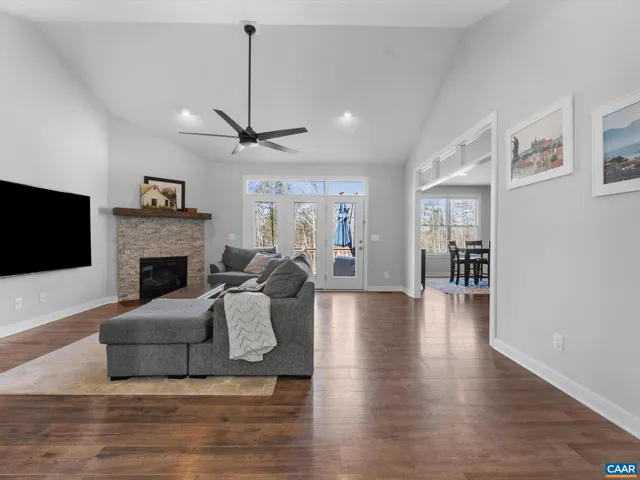Welcome to this stunning 2021 custom built home situated on a secluded 21 acres with a year round water feature south of Charlottesville, within a 30-minute drive to the city. This single level home with a part finished basement boasts over 2,400 square feet of finished living space along with 4 bedrooms & 3.5 bathrooms. After arriving from the gravel road entry, you will be greeted by Mannington waterproof laminate flooring that spans most of the home. The vaulted ceiling living room houses the gas fireplace, which is fed by the 500-gallon propane tank (also for the 24kw generator). Continue into the spacious kitchen featuring granite countertops, an island with seating, walk-in pantry, dining area, and stainless-steel appliances. 3 bedrooms are located on the main living level, including the primary, which is equipped with a tray ceiling, full en-suite bathroom, and a walk-in closet. The laundry room is located beyond the kitchen with a convenient tub sink. The part finished walk-out basement includes the 4th bedroom, another full bathroom, a generously sized rec room, and an insulated unfinished area that has been used as a game room.