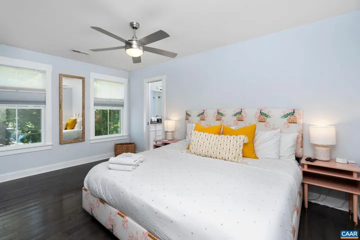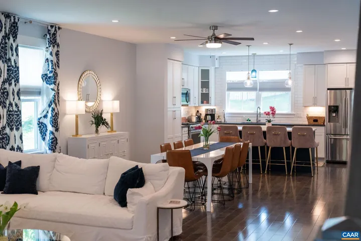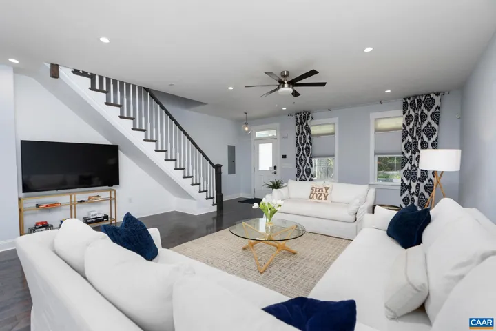 2019 built move in ready home sold furnished in the most walkable neighborhood in Charlottesville. Tucked away just off main street 1/2 mile to UVA and 3/4 mile to downtown. Main level features an open concept living, dining, kitchen plus powder room. Granite counters, dishwasher, gas range, and island are highlights of the kitchen. Upstairs find primary suite with king bed, walk in closet, and en suite bathroom with double vanity and walk in tile shower. Two more bedrooms with jack and jill bathroom including double vanity and tub shower combo. Laundry room completes the second floor. Inviting front porch, fenced back yard, and dedicated off street parking spot. Great rental history as a furnished monthly/executive rental. Dozens of restaurants, breweries, and shops all a stone’s throw away. Fantastic investment property or primary residence in the heart of Charlottesville.,Granite Counter,White Cabinets