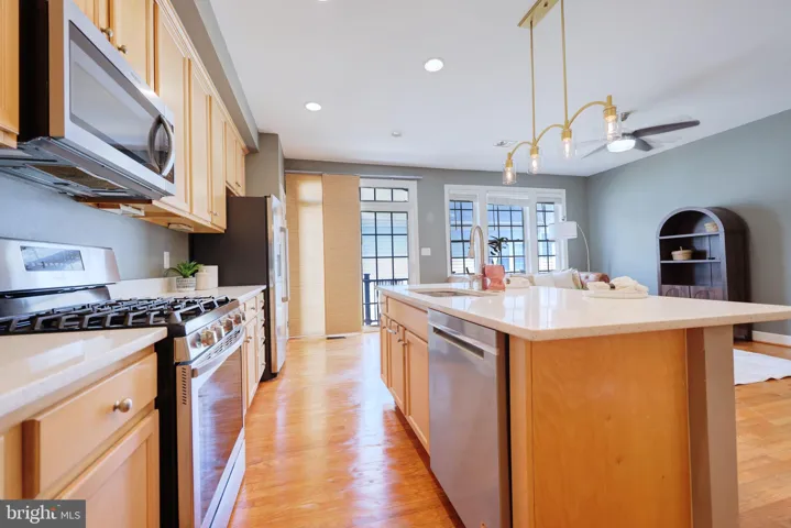 The kitchen is the true centerpiece, featuring a large center island with gleaming white quartz countertops, custom wood cabinetry, and plenty of room to cook, gather, and entertain. Just off the kitchen, the newer composite deck offers the perfect spot to sip your morning coffee while enjoying the peace and quiet of the neighborhood.