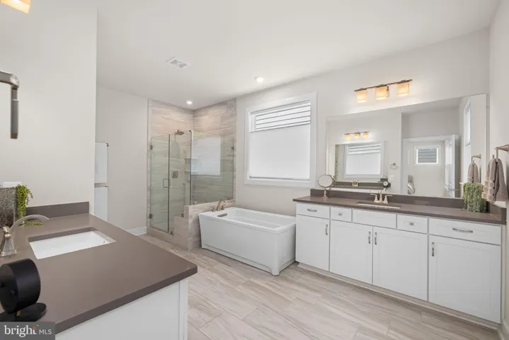 Upstairs, the expansive primary suite includes two walk-in closets and a spa-inspired bath with a soaking tub, oversized shower, dual vanities, and a private water closet. Three additional bedrooms, a full bath, and a laundry room with rough-in for a utility sink provide everyday ease and future flexibility.