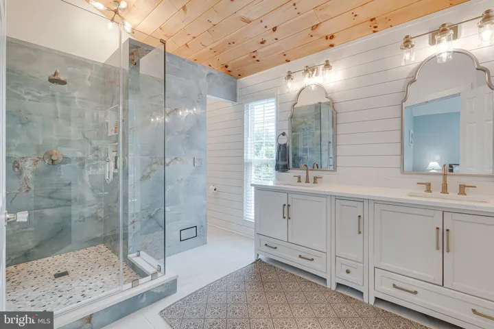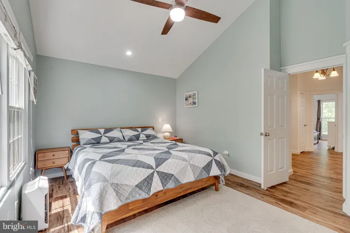 At the end of the hallway, the primary suite impresses with vaulted ceilings, a built-in reading light, and a luxuriously renovated en suite bathroom. Enjoy the spa-like finishes, and a walk-in closet located right inside the bath for convenience.