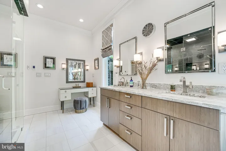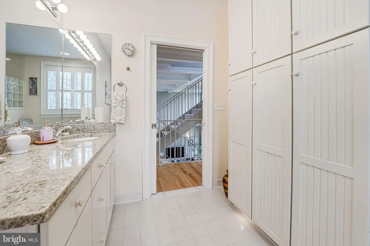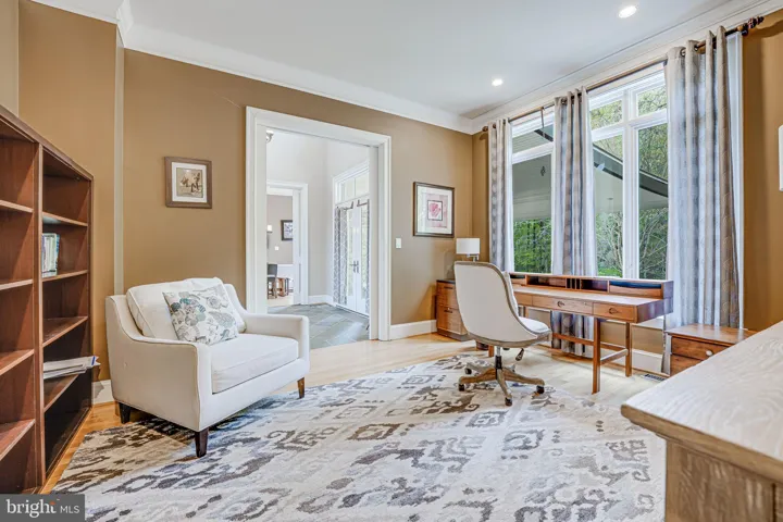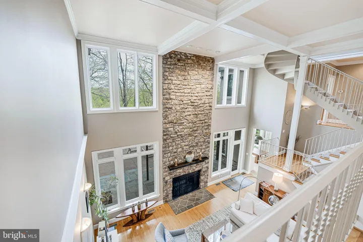 The modern kitchen is large with light wood cabinetry, quartz counters, French-door refrigerator with built-in soda maker, gas range, and a length of wall bar made from George Washington’s Whiskey Distillery walnut. The connected eat-in breakfast room has more of the gorgeous view with an attached screened porch, fabulous for bird watching. A must see!