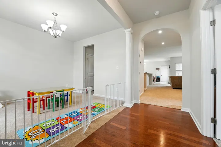 Upstairs, you’ll find 4 generously sized bedrooms, 2.5 bathrooms, a convenient upper-level laundry room, and a dramatic two-story staircase with hardwood stairs and landing that adds an elegant touch.