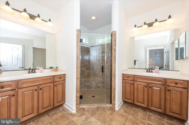 Upstairs, the primary suite is a peaceful retreat with a tray ceiling, walk-in closet, and a spa-like ensuite bath complete with dual vanities, a spacious walk-in shower, and natural light pouring through large windows. Two additional bedrooms, a dual-sink hall bath, and a full-sized upstairs laundry room make this level as functional as it is comfortable.