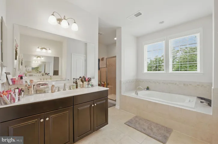 Upstairs, the spacious primary suite includes a private sitting area, dual vanities, a soaking tub, and a separate shower. One of the three additional bedrooms features its own en-suite bath — ideal for guests or multigenerational living.