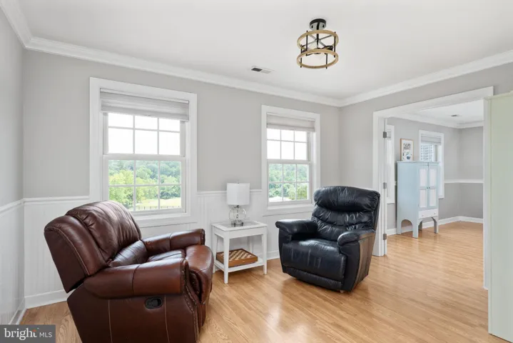 Equestrians will appreciate the fully equipped, move-in-ready facilities. A five-stall center-aisle barn includes tack and feed rooms, a wash rack, ample storage, and a layout tailored for both convenience and horse well-being. Expansive fenced pastures support grazing and rotation, while a run-in shelter provides flexible turnout options. The land itself is a harmonious mix of open, gently rolling fields and shaded woods—ideal for riding, hiking, or simply enjoying the peaceful rhythm of country life.