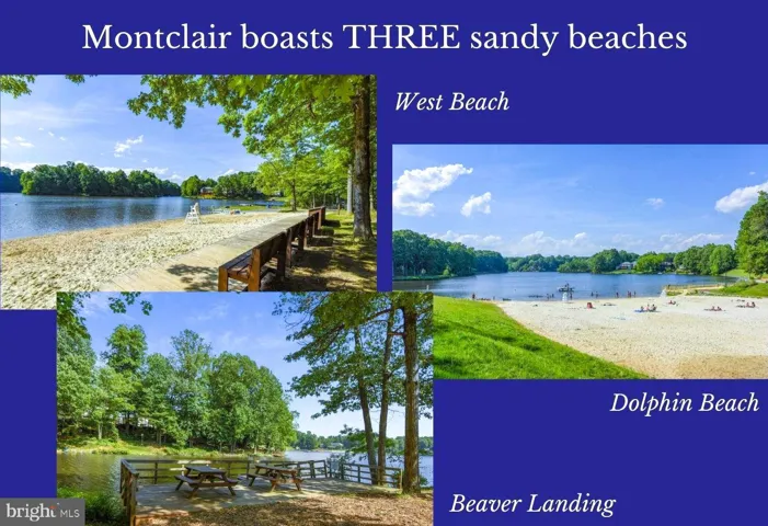 Located in award-winning Montclair, with extraordinary community amenities including basketball courts, tennis courts, baseball fields, many playgrounds, bike trails, walking/jogging paths, and a dog park. Exclusive access to three private beaches—Beaver Landing, Dolphin Beach, and West Beach—each featuring a boat dock, swim dock, sandy shores, and picnic areas. Enjoy boating and fishing on the 108-acre Lake Montclair. During the summer, lifeguards ensure a safe and fun environment for residents. The prestigious Montclair Country Club, with its private golf course, adds to the serene and scenic backdrop of this vibrant community. Families will appreciate the award-winning schools in the area. The neighborhood features a library, variety of restaurants, and a grocery store, providing convenience for daily needs and activities. Commuters will love the easy access to Marine Corps Base Quantico, Fort Belvoir, and I-95, with nearby commuter lots and PRTC bus service direct to the Pentagon.