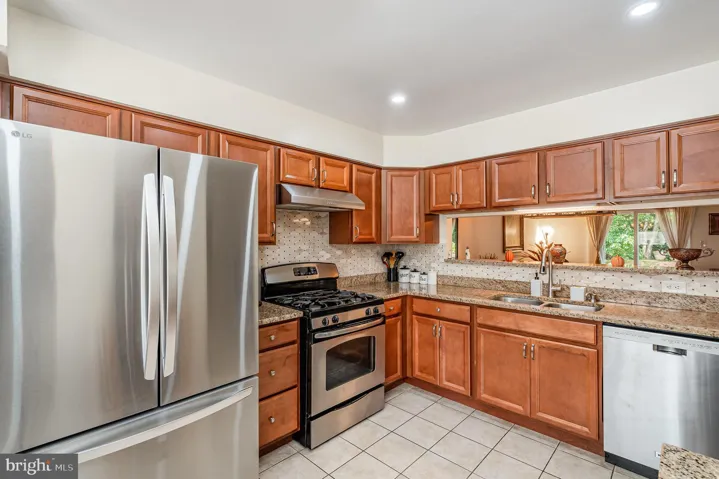 This beautiful home features durable laminate wood floors, a cozy fireplace, and an updated kitchen with stainless steel appliances, granite countertops, ceramic tile floors, and a sunny breakfast nook. Recent kitchen upgrades include a NEW refrigerator (2025), backsplash (2025), and range hood vent (2025). The dining area opens to a Trex deck (2023), perfect for outdoor entertaining.