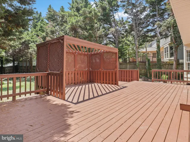 Step outside onto an enormous deck with newly replaced deck boards and freshly stained. A lovely view of the back yard lined with evergreen trees along the fence provides a great sense of privacy and evening shade,
