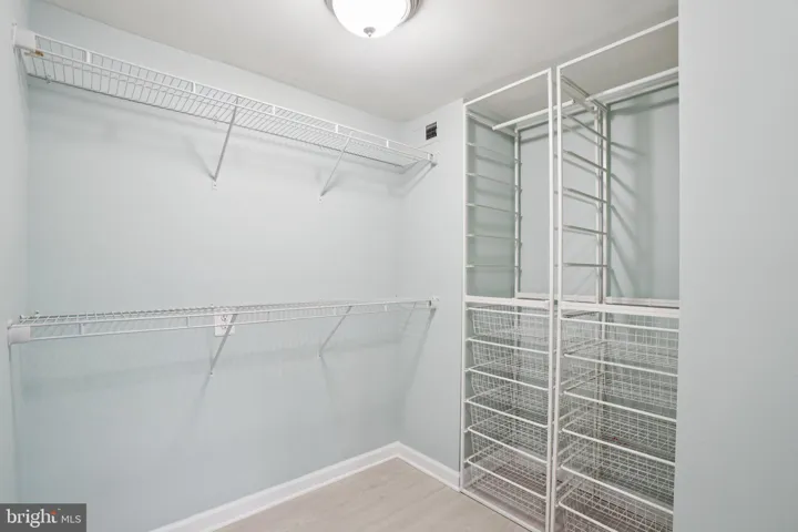 Upon entering, you’re greeted by an open and airy floor plan, with LVT flooring throughout and floor-to-ceiling windows that fill the space with natural light. The spacious living room leads out to a private balcony where you can take in the stunning D.C. skyline.