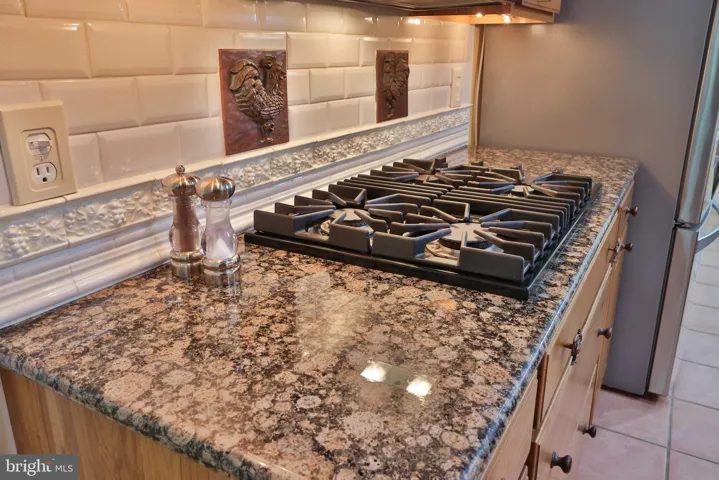 The chef’s kitchen is both beautiful and functional, featuring granite countertops, twin wall ovens, a prep sink on the center island, and classic raised-panel hickory cabinets. Warm under-cabinet lighting adds a subtle touch of refinement.