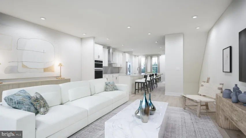 —-Open-concept main level with 9′ ceilings and oak stairs on all floors