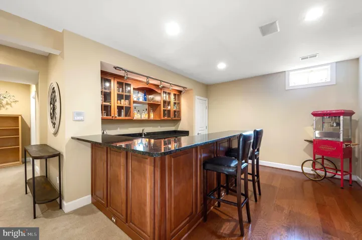 The fully finished walk-out up lower level is an entertainer’s haven, complete with a state-of-the-art home theater, full granite wet bar with wine fridge, a gym, soundproof flex/office space, and a fifth bedroom with full bath ideal for guests or an Au Pair.