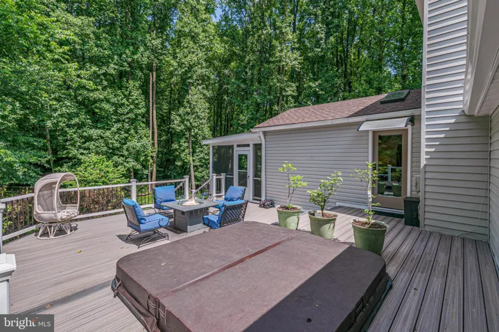 spacious deck featuring a hot tub. The backyard provides ample room for play,