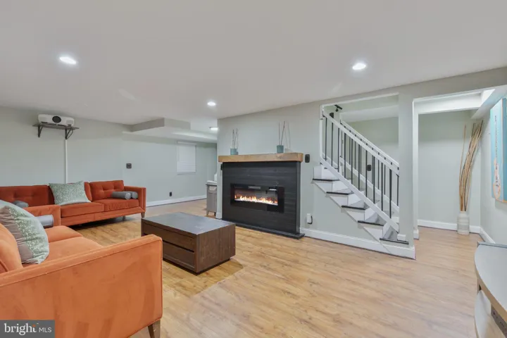 The finished lower level walk out basement expands your living space with a cozy movie room complete