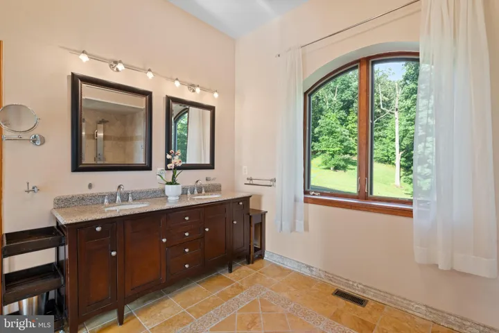 Provincial 4-inch-thick front door, wonderful roof lines, custom outdoor stone mosaics and a large semi-circle paved driveway plus additional parking pad welcome you home. Old world charm meets modern elegance in the 7000 finished square feet open concept interior with arched entryways and windows; solid cherry and walnut 2 panel beveled doors and trim throughout; custom lighting including true alabaster and golden onyx chandeliers; durable hardwood floors; and plenty of recessed lighting. The gourmet kitchen is a chef’s dream, boasting an oversized island with breakfast seating; granite countertops; stainless steel appliances include an industrial grade 48-inch cooktop and range hood; 2 walk-in pantries; and flows effortlessly to a formal dining area and truly grand great room with soaring 16-foot ceilings fit to entertain a hundred guests or simply a quiet evening next to the impressive stone mantle fireplace. Main level primary bedroom with spa-like en suite bathroom and sliding doors that open to the majestic views. A flex office/bedroom and large mudroom complete the main level. Upstairs you’ll find 3 equally large bedrooms plus 2 full bathrooms all with ample separation offering privacy for the family and guests. The finished walk-out basement has a sprawling rec room with 12 ft media screen; wet bar rough-in; 2 dens for storage, wine room or private living space; and a 6th large bedroom with en suite bathroom great for guests or in-law/teen suite. Take in all the nature and let stress fade into the picture-perfect sunsets on the travertine terrace off the main level or from the screened in stone porch or large open patio off the lower level. Hurricane-proof, super-insulated concrete walls, copper roofing, and geothermal HVAC provide worry-less living and energy efficiency. Get away from it all while being just 11 miles to both Warrenton and Culpeper. Simply One of a Kind!