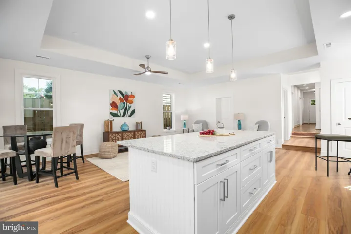 Step into the heart of the home: a bright, open-concept kitchen and living space. The kitchen features stainless steel appliances, soft-close cabinets, a walk-in pantry, and a large island with seating and storage on both sides. There’s plenty of space for a dining table and a cozy sitting area, with sliding glass doors that lead out to a large backyard—a rare find downtown! Whether you’re hosting friends, creating a firepit hangout, or giving kids and pets room to play, this backyard offers endless possibilities.