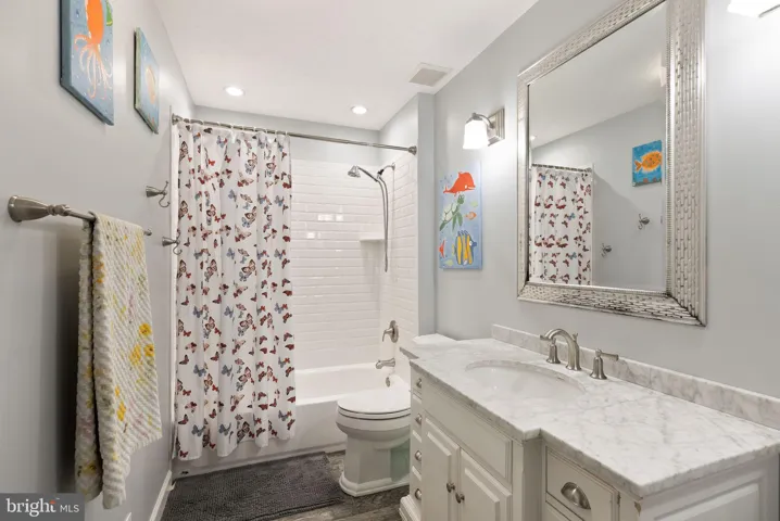 Welcome home to this lovely 4 Bedroom, 3.5 bath luxury single family home in the beautiful, well cared for, Stanley Forest community. This corner lot offers you plenty of space and scenic enjoyment. The home has just been painted throughout with designer colors and the carpet on the lower level has been recently replaced. The main level boasts gleaming hardwoods throughout as well as all of the bedrooms on the upper level. The heart of the home is the beautiful gourmet kitchen with stainless steel appliances, granite countertops and beautiful cabinets. You have a formal dining area that opens right up to the beautiful light-filled living room. Just off the kitchen is a cozy family room with a gas fireplace. Just off the family room is a large deck which allows you to extend your outdoor entertaining. On the lower level, there is a large recreation room, an exercise room, a full bathroom, and a NTC fifth bedroom! Enjoy your fenced back yard allowing privacy. Close to shopping, restaurants, and commuter lots, this home has it all! Make plans to see it today! Welcome home!